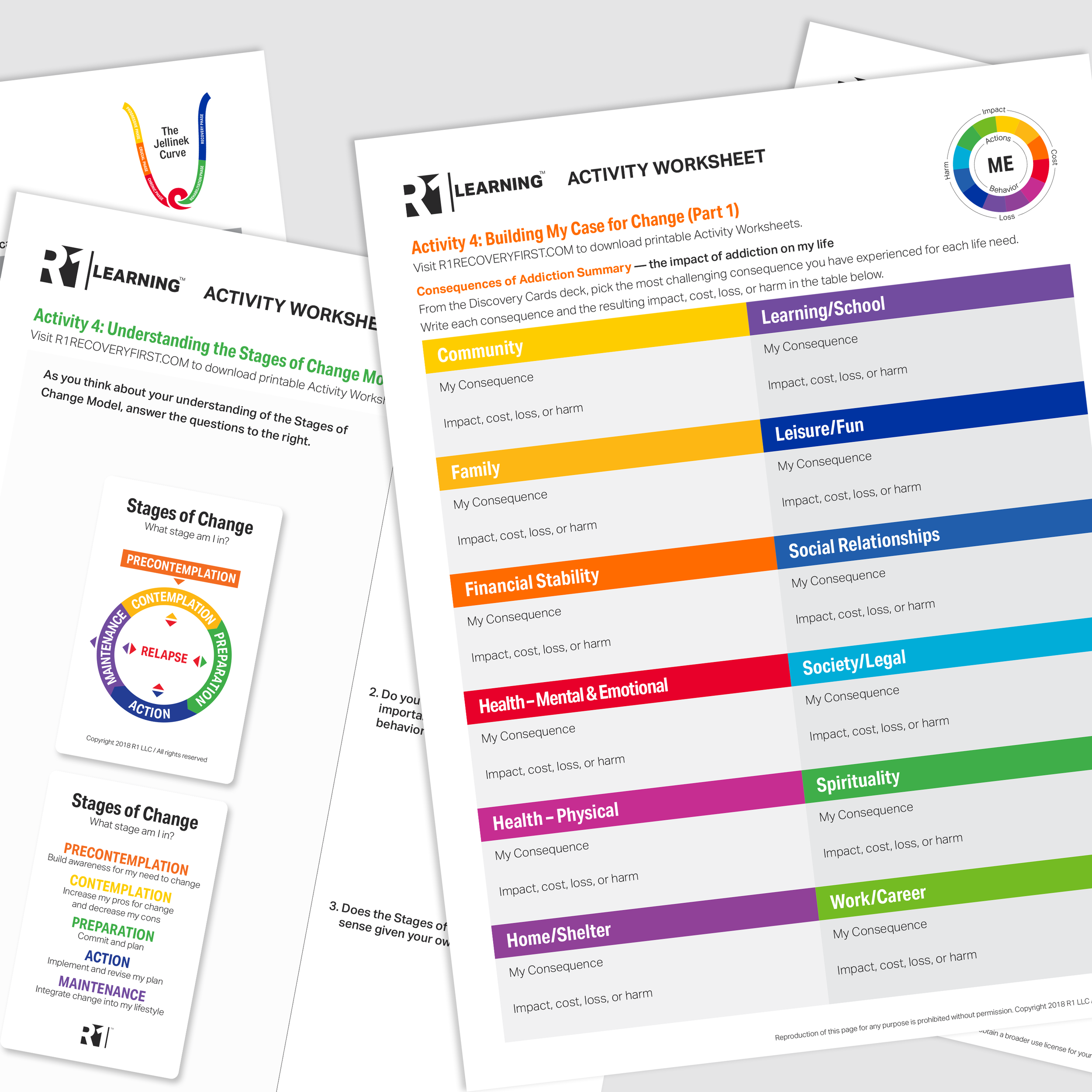 Use the Discovery Cards to build your organization's brand. Workbooks and worksheets typically get thrown away after a treatment or recovery program. The Discovery Cards are rarely thrown away. They are kept on desks or in prominent places at home and often reused with others. Add your logo and contact information to Discovery Card boxes to promote and extend your brand. Use with both clients in treatment or alumni in after-care programs. The benefits will be exponential as they share and use the tools with family members, friends, and individuals in their broader recovery networks.